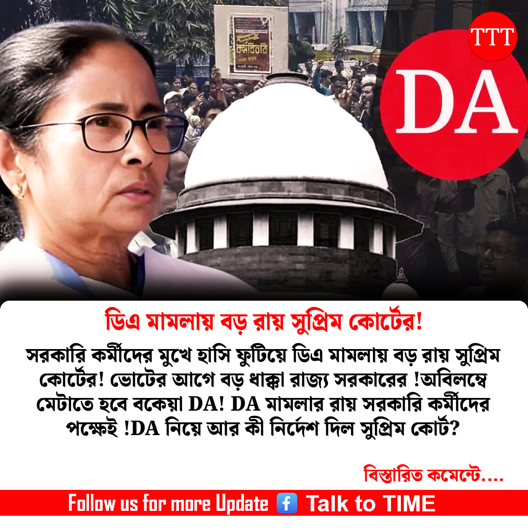 উল্লেখযোগ্যভাবে, পশ্চিমবঙ্গ রাজ্য সরকারি কর্মীদের বকেয়া ডিএ সংক্রান্ত এই মামলা দীর্ঘ প্রায় এক দশক ধরে চলেছে।