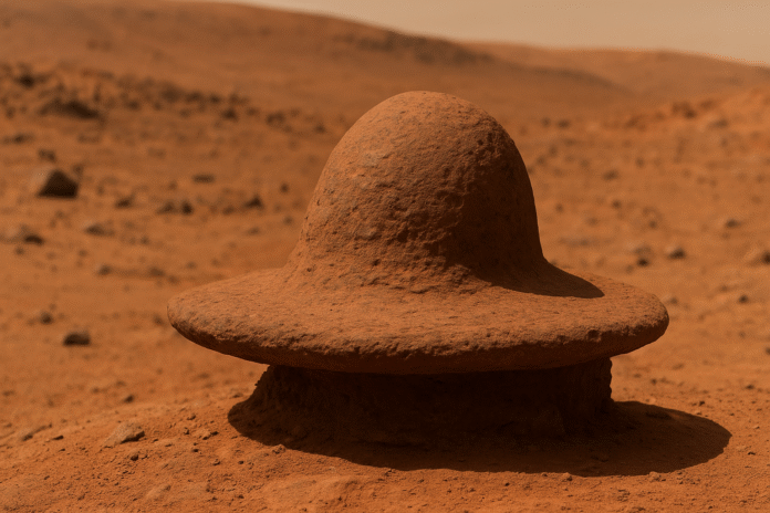 মঙ্গলগ্রহ ক্রমশ চমকের ভাণ্ডার হয়ে উঠছে। নাসার রোভার পারসিভিয়ারেন্স ফের এক অদ্ভুত সন্ধান নিয়ে এসেছে – একটি টুপির মতো পাথর। হ্যাঁ, এটি মাথায় পরার টুপি নয়, তবে হুবহু আবহাওয়ার কপ থেকে মাথা বাঁচাতে যে ধরনের টুপি ব্যবহার হয়, ঠিক সেই রকম আকৃতির। এই অচেনা পাথর দেখে বিজ্ঞানীদের উৎসাহ বেড়েছে। মঙ্গলের চেনা পাথরের সমান্তরাল এই নতুন আকৃতির উপস্থিতি রহস্য তৈরি করেছে।